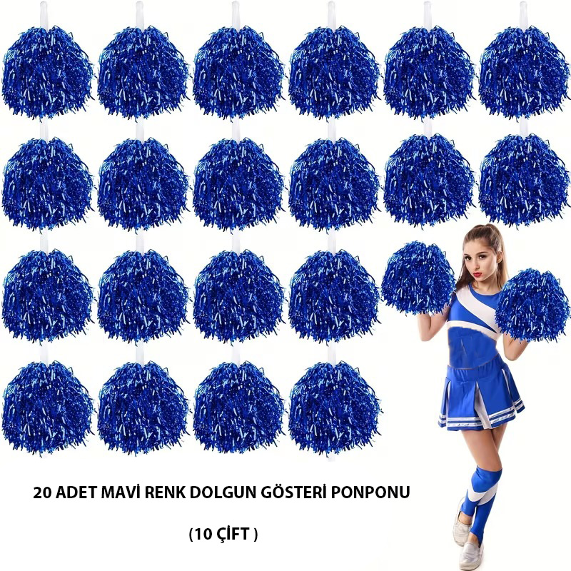 Okul gösterileriniz ve özel gün etkinlikleriniz için ışıltılı ve şık bir seçim! Bu 10 çift (20 adet) mavi renk ponponlar, 23 Nisan, 19 Mayıs ve 29 Ekim gibi milli bayramlar ile okul kutlamalarında mükemmel bir şekilde kullanılabilir. Öne Çıkan Özellikler: Renk: Mavi, gösterilerde dikkat çekici parlaklık Adet: 10 çift (toplam 20 ponpon) Kullanım Alanı: Okul gösterileri, törenler, dans ve koreografi aktiviteleri Malzeme: Hafif ve dayanıklı, öğrenciler için güvenli Kolay Kullanım: Eller için uygun boyut ve rahat tutuş Özel günlerde etkinliklerinizi daha canlı ve renkli hale getirin! Öğrencilerinizin performansını tamamlayacak parlak ponponlarla gösterilerinizi unutulmaz kılın.