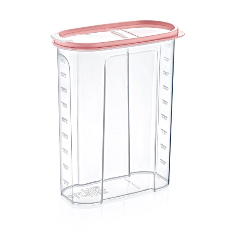 2.4 Lt Erzak Saklama Kabı, mutfakta düzeni sağlamak ve kuru gıdaları güvenli şekilde muhafaza etmek için tasarlanmış pratik bir depolama çözümüdür. 2.4 litre geniş hacmi sayesinde bakliyat, makarna, pirinç, un, şeker, kahvaltılık gevrek ve benzeri kuru gıdaların saklanmasına uygundur. Şeffaf gövde tasarımı ile içerisindeki miktarı kolayca kontrol etmenizi sağlar. Ölçü çizgileri bulunan yüzeyi sayesinde doluluk oranı rahatlıkla takip edilebilir. Kapaklı yapısı sayesinde ürünlerin dış etkenlerle temasını azaltmaya yardımcı olur ve dolap içinde düzenli bir görünüm sunar. Ergonomik ve yer tasarrufu sağlayan formu ile hem tezgâh üzerinde hem de mutfak dolaplarında kullanıma uygundur. Günlük kullanım için ideal olan bu erzak saklama kabı, mutfakta düzen ve pratiklik arayanlar için işlevsel bir tercihtir.