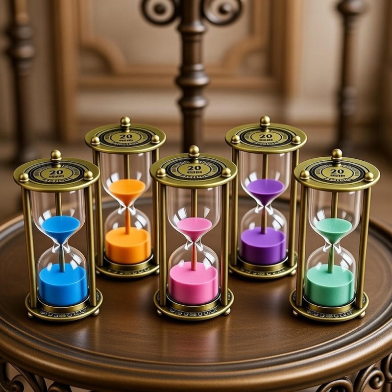 Zamanın en zarif halini masanıza taşıyın! 20 Dakikalık Metal Vintage Kum Saati, antik görünümlü metal iskeleti ve kaliteli cam işçiliğiyle hem dekoratif bir obje hem de işlevsel bir zamanlayıcıdır. 13 cm x 5.5 cm boyutlarındaki kompakt tasarımı, çalışma masalarından kitaplıklara kadar her alana mükemmel uyum sağlar. Üst metal çerçevesinde yer alan "20 Dakika" ibaresi, ürünün karakterini ön plana çıkarırken retro atmosferi perçinler. Odaklanma gerektiren çalışmalarınızda, mola sürelerinizde veya meditasyon seanslarınızda size eşlik edecek bu ürün; mavi, turuncu, pembe, mor ve yeşil gibi canlı kum renkleriyle mekanınıza enerji katar. Yüksek kaliteli metal malzemesi sayesinde dayanıklı bir yapıya sahip olan bu kum saati, vintage tutkunları için benzersiz bir hediye seçeneğidir.