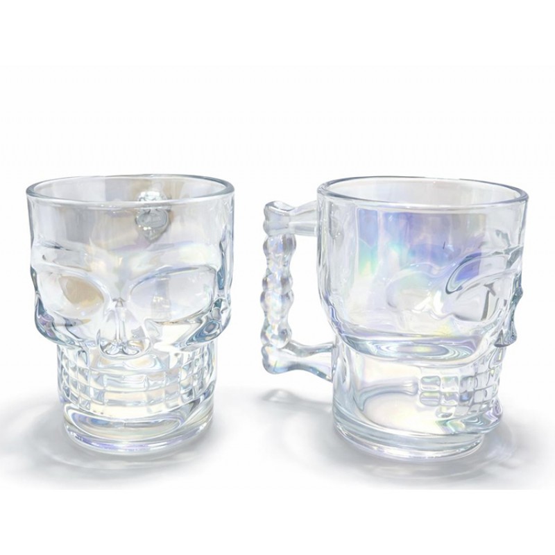2 Adet Şeffaf Cam Kurukafa Kupa Bardak.