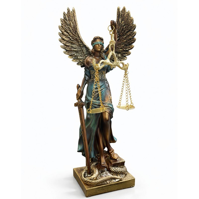 30x9 cm Polyester Kanatlı Adalet Biblosu, klasik adalet figürünü kanat detayı ile tamamlayan özel tasarımı sayesinde dekoratif alanlarda dikkat çekici bir duruş sergiler. 30x9 cm ölçülerindeki ideal boyutu ile masa, konsol ve kitaplık üzerinde rahatlıkla konumlandırılabilir. Polyester malzemeden üretilmiş olan kanatlı adalet biblosu, detaylı figür yapısı ve estetik görünümü ile bulunduğu ortama güçlü bir karakter kazandırır. Hukuk büroları ve ofis ortamları için anlamlı bir aksesuar olan polyester adalet figürü, hem sembolik hem de dekoratif bir obje olarak öne çıkar. Kanatlı tasarımı sayesinde klasik modellerden ayrılan dekoratif adalet heykeli, modern ve geleneksel dekorasyon stilleri ile uyum sağlar.