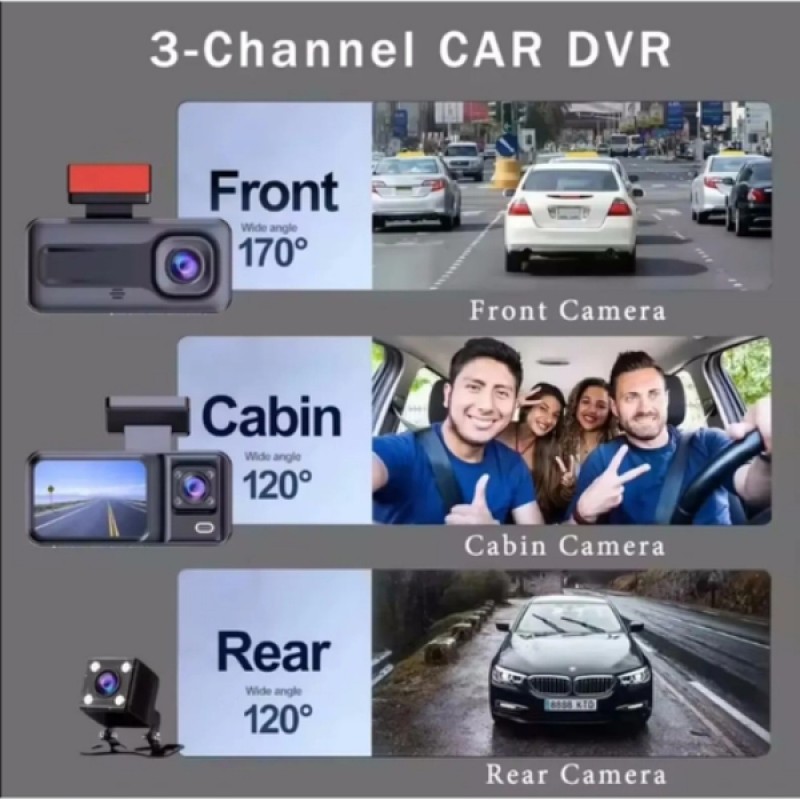 1080P FHD ön kamerası ve 720P geri görüş kamerası ile üçlü kamera desteği mevcuttur. TF kart girişi ile 32GB’a kadar hafıza desteği bulunur. 5.0 MP çözünürlük ve 30 FPS hızında kayıt yapabilen cihaz, 170° geniş açılı lensi sayesinde daha geniş bir görüş alanı sağlar. Gece çekimi desteği ile düşük ışıkta da net kayıtlar sunar.