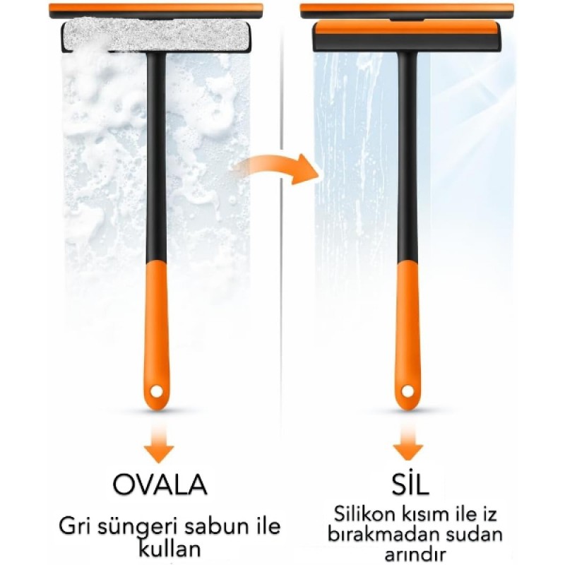 360 Derece Oynar Çift Başlıklı Çekçek Cam Temizleme Aparatı, cam yüzeylerde etkili ve iz bırakmadan temizlik sağlamak için tasarlanmış pratik bir temizlik yardımcısıdır. 360 derece dönebilen başlık yapısı sayesinde farklı açılarda rahat kullanım sunan çift başlıklı cam temizleme aparatı, geniş yüzeylerde konforlu hareket imkanı sağlar. Çıkarılabilir iki farklı başlık seçeneği bulunan 360 derece oynar çekçek, gri mikrofiber yüzeyi ile sabunlu temizlik yapmanıza yardımcı olurken turuncu sünger başlığı ile yüzeyi arındırır.