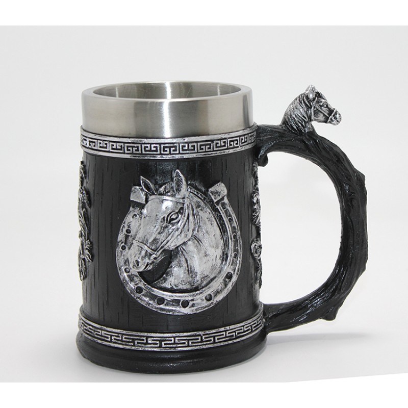 3D Kabartmalı At Büstü Paslanmaz Çelik Kupa Bardak