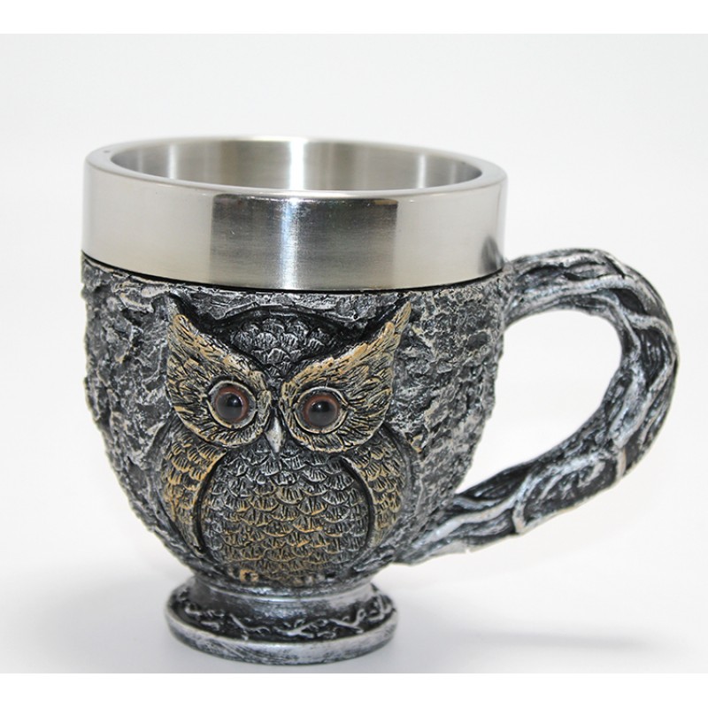3D Kabartmalı Baykuş Büstü Paslanmaz Çelik Kupa Bardak