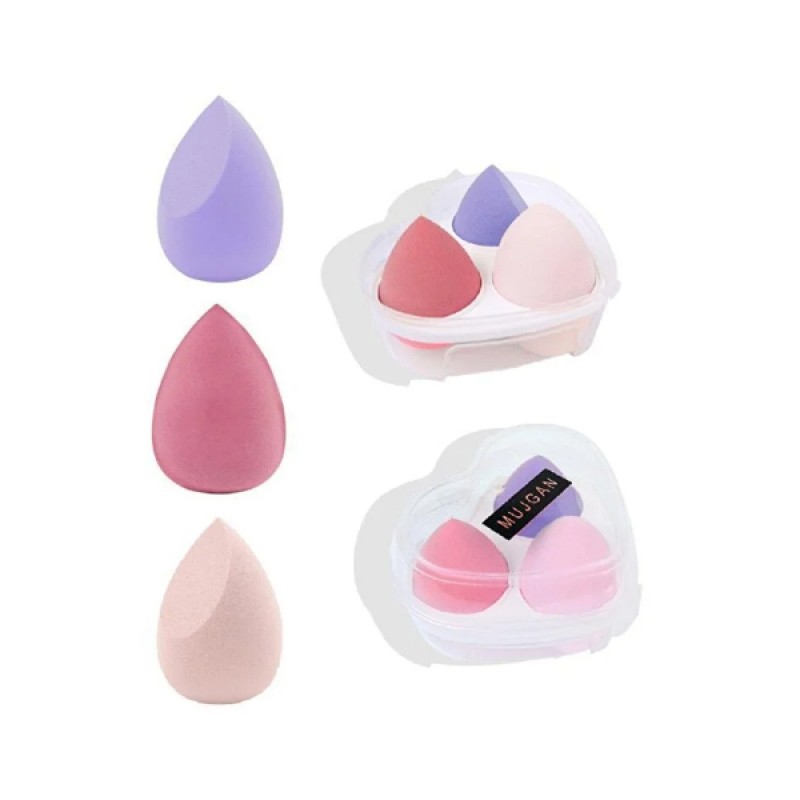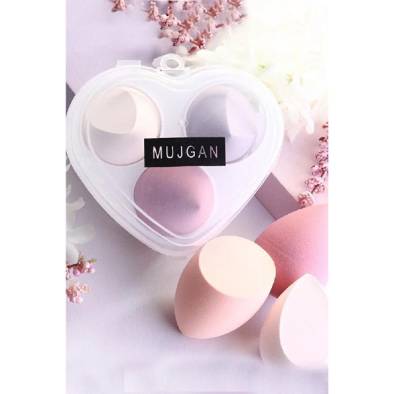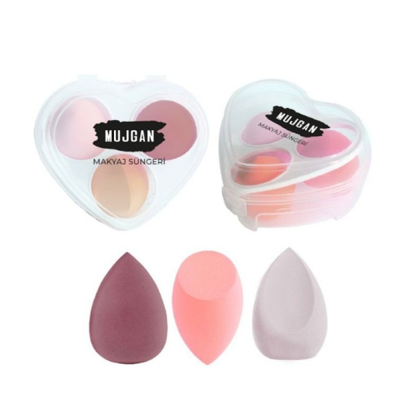 3 adet makyaj süngeri ve 1 adet kalpli saklama kutusu