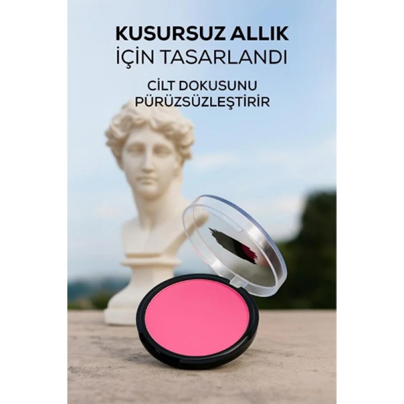 3 farklı ton seçeneği sayesinde günlük hafif makyajdan daha belirgin ve iddialı görünümlere kadar farklı stiller oluşturulabilir. Yüksek pigmentli allık formu yanaklara homojen şekilde dağılır ve doğal bir geçiş sağlar. Kompakt ve aynalı tasarımı ile çantada taşımaya uygundur ve gün içinde makyaj tazelemek için pratik kullanım sunar. Matte powder allık formu gözenek görünümünü belirginleştirmeden pürüzsüz bir bitiş sağlar.