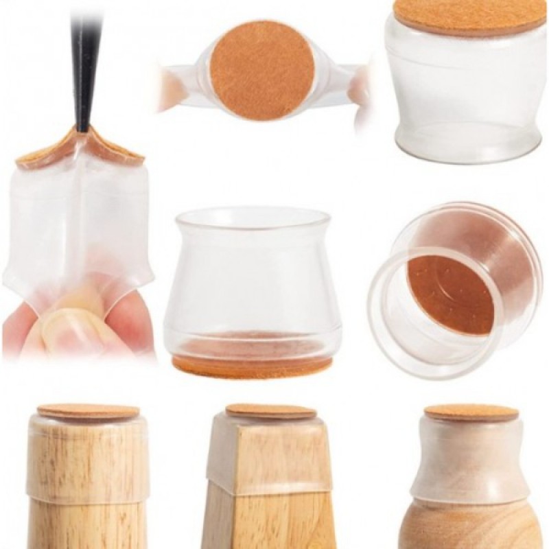 4 Adet Keçeli Şeffaf Silikon Sandalye Ayak Koruyucu