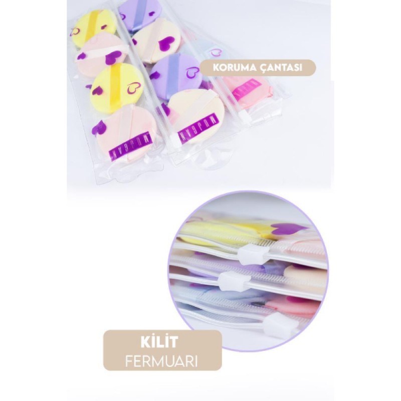 4'lü tutmalı pudra makyaj süngeri puf seti, hem kuru hem de ıslak kullanım imkânı sunarak ten makyajında pratik ve dengeli uygulama sağlar. Yuvarlak formu sayesinde yüz hatlarına kolayca uyum sağlar ve pudra, fondöten gibi ürünlerin cilde eşit şekilde dağıtılmasına yardımcı olur. Tutmalı makyaj pufu tasarımı arka kısmındaki elastik bant sayesinde ele rahatça oturur ve kontrollü kullanım imkânı sunar. Yumuşak dokulu yüzeyi ürünün cilt üzerinde homojen dağılmasına destek olurken, makyajın daha pürüzsüz görünmesine katkı sağlar. Pudra süngeri puf seti hem sabitleme işlemlerinde hem de ten ürünlerinin uygulanmasında tercih edilebilir.
