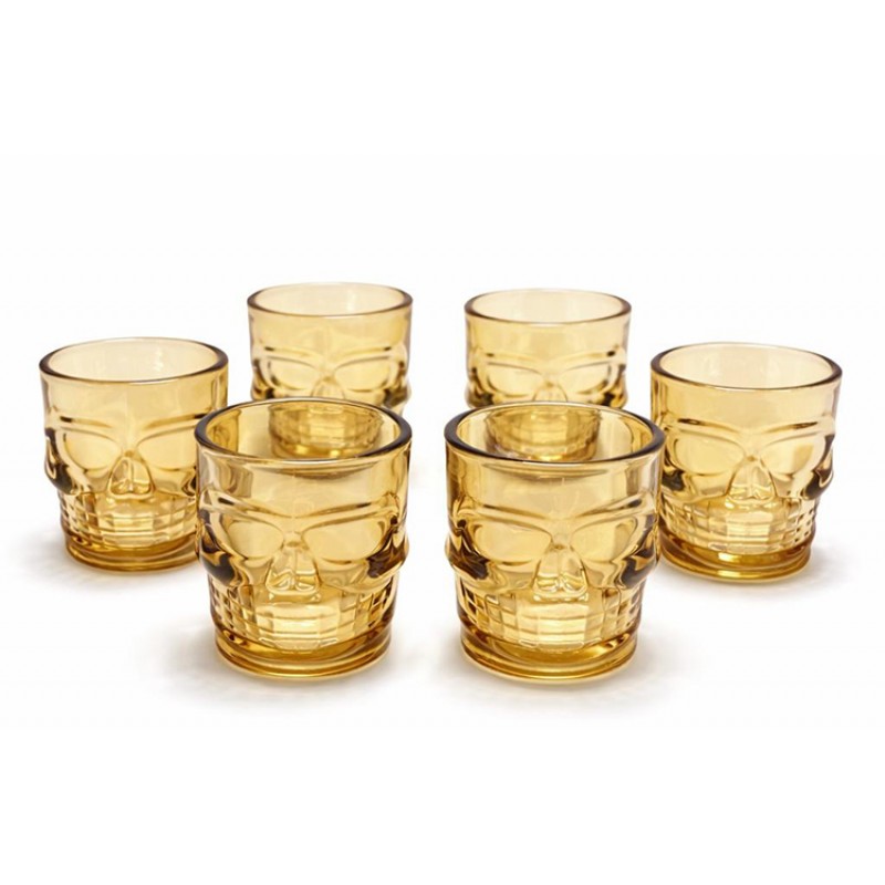 6 Adet Kurukafa Tasarımlı Sepya Cam Shot Bardağı.