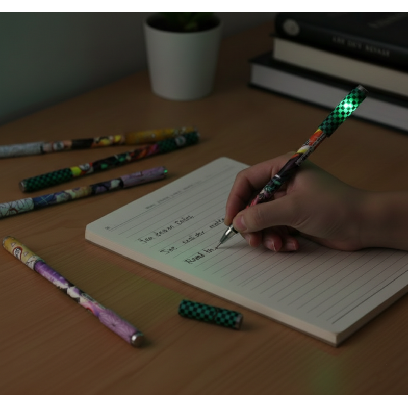 Anime dünyasının büyüsünü yazı masanıza taşıyın! Şık tasarımı ve üzerinde yer alan ikonik anime figürüyle dikkat çeken bu kalem, sadece bir yazı aracı değil, aynı zamanda masanızın en havalı parçası olacak. Entegre LED ışık özelliği sayesinde karanlıkta bile yazım yapmayı mümkün kılarken, akıcı mürekkep yapısıyla kağıt üzerinde kusursuz bir performans sergiler. Hem günlük notlarınızda kullanabileceğiniz hem de koleksiyonunuza ekleyebileceğiniz bu kalem, dayanıklı yapısıyla uzun süreli bir macera sunuyor.