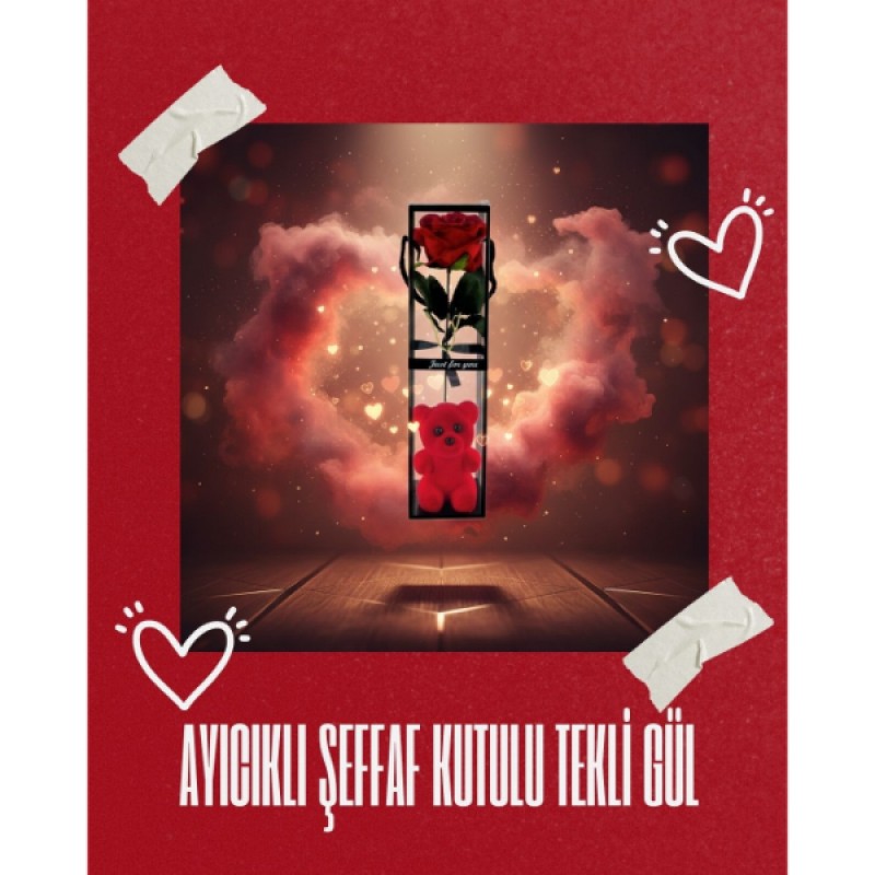 | Ürün Adı | Ayıcıklı Şeffaf Kutulu Tekli Gül |
