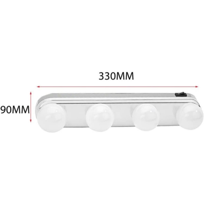 Ayna Makyaj Işığı, güçlü ve homojen aydınlatma sağlayan 4’lü LED ampul tasarımıyla makyaj uygulamalarında profesyonel bir ışık deneyimi sunar. 330 mm genişliğe ve 90 mm yüksekliğe sahip kompakt yapısı sayesinde her boyutta ayna ile rahatlıkla kullanılabilir. Pil ile çalıştığı için kablo karmaşasına gerek kalmaz ve istenilen her yere kolayca taşınarak kullanılabilir.