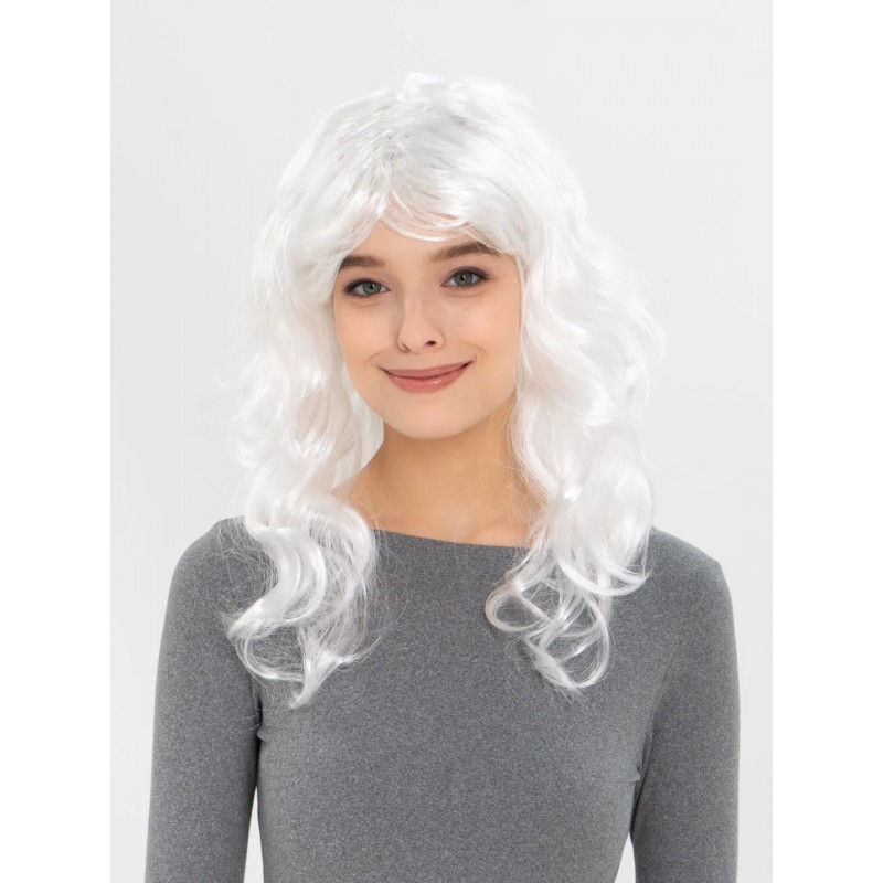 Beyaz Renk Dalgalı Uzun Parti Peruğu Yetişkin ve Çocuklara uyumludur Çok küçük çocuklara kullanmak için peruk içindeki astarı daraltmanız yeterli olacaktır İç astar sayesinde kafaya göre uyum sağlar ve kafadan düşme yapmaz Ürün günlük kullanıma uygun değildir. Peruk Uzunluğu : 50 cm ( Yaklaşık )