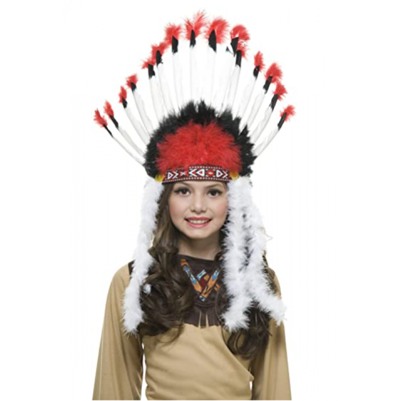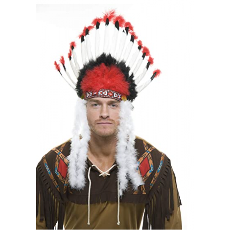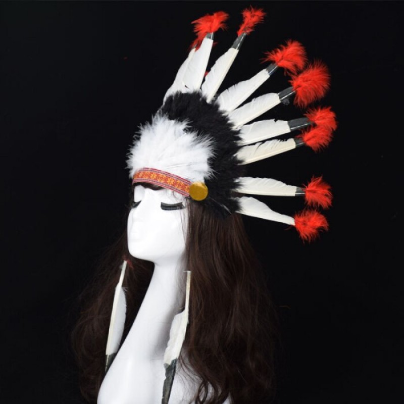 Beyaz Tüylü Siyah Kırmızı Büyük Hintli Kızılderili Başlığı