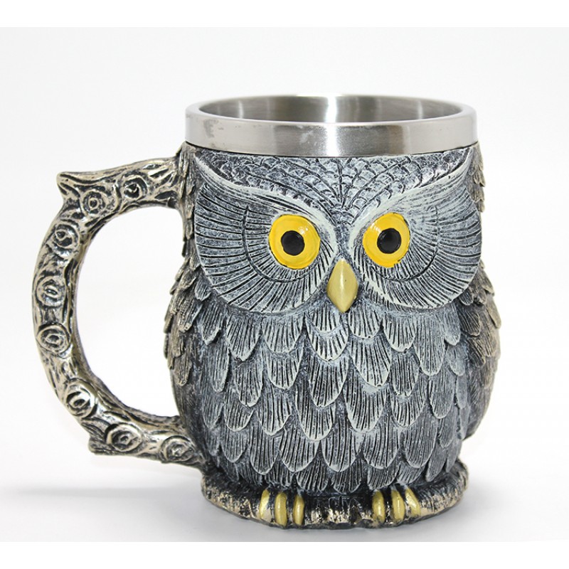 Bilge Baykuş Figürlü 3D Kabartmalı Paslanmaz Çelik Kupa Bardak