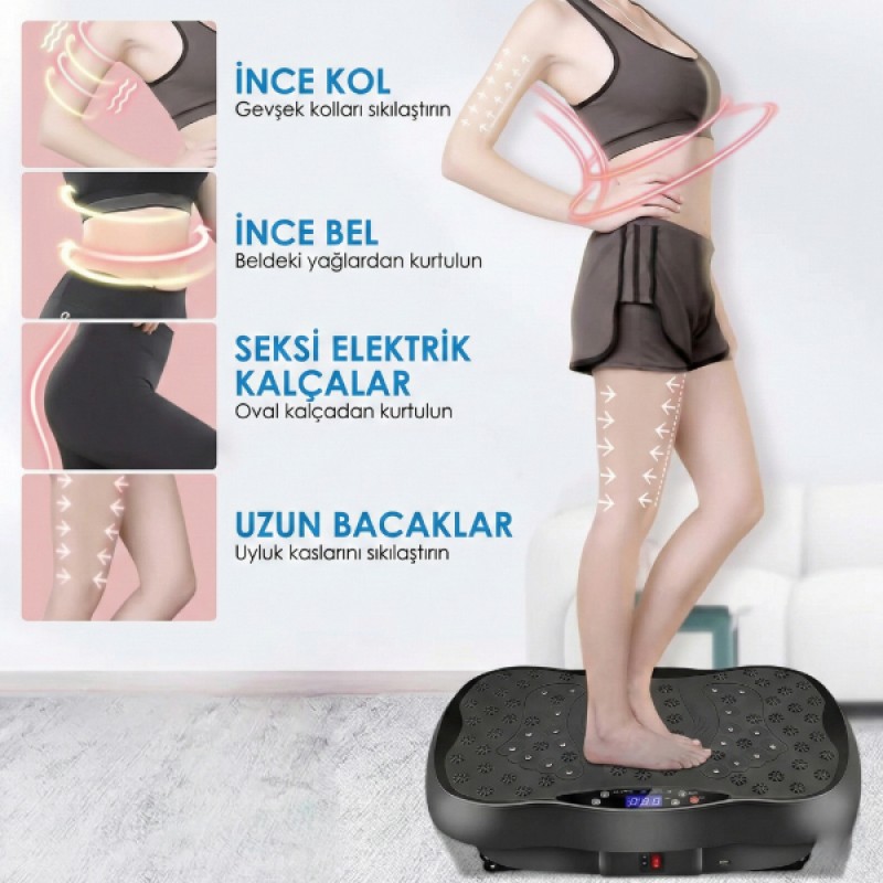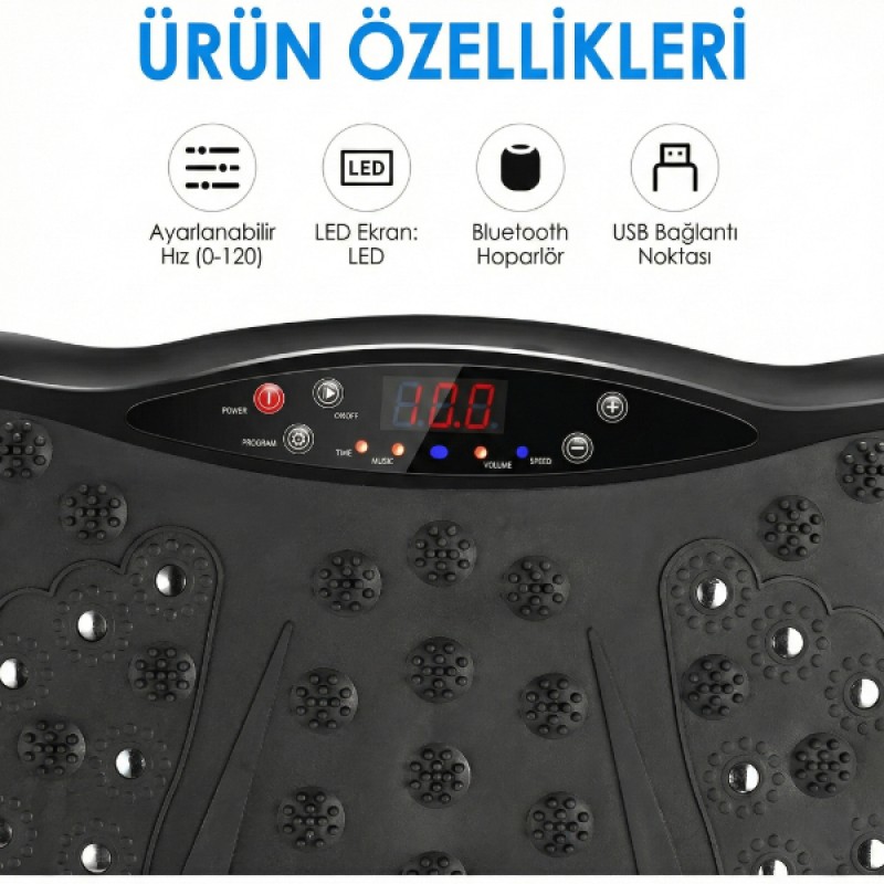 Bluetooth bağlantı özelliği sayesinde müzik eşliğinde motive edici antrenman deneyimi sunar. Direnç bantları ile birlikte kullanıldığında üst vücut egzersizlerini de destekler. Farklı hız ve titreşim seviyeleri ile hem yeni başlayanlar hem de ileri seviye kullanıcılar için uygundur. Günlük spor rutini oluşturmak, kilo kontrolüne destek olmak ve vücudu şekillendirmek isteyenler için pratik ve etkili bir çözümdür.