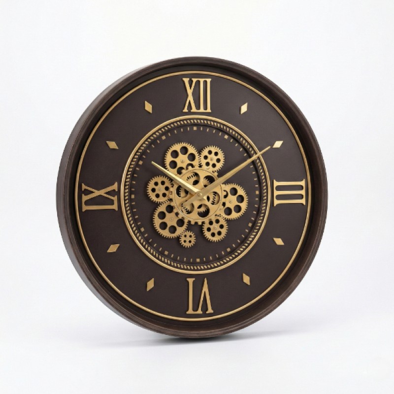 55 cm çapındaki çarklı duvar saati, büyük boy ölçüsü ve iç kısmında yer alan detaylı mekanik çark tasarımıyla bulunduğu ortamda güçlü ve dikkat çekici bir dekoratif etki oluşturur. Görselde de net şekilde görülen açık mekanizmalı çark detayı, saate endüstriyel ve vintage tarzı bir karakter kazandırırken, Roma rakamlı kadran yapısı klasik estetik anlayışı modern çizgilerle birleştirir. Altın tonlu çark ve rakam detayları, koyu zeminle kontrast oluşturarak saatin uzaktan bile rahatça okunmasını sağlar. Geniş kadranı sayesinde salon, oturma odası, ofis, kafe, restoran ve loft tarzı mekânlarda dekorasyonun odak noktası haline gelir.