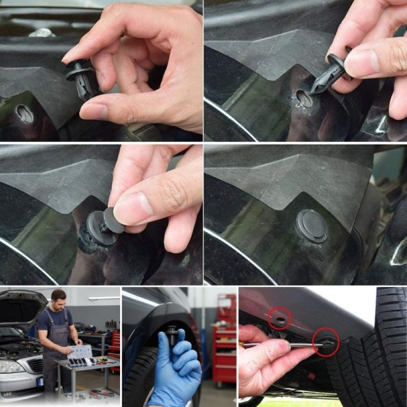 Özel tasarımı sayesinde klipsler kolayca takılıp sökülebilir ve bakım ile tamir süreçlerinde zamandan tasarruf sağlar. Setin bölmeli ve şeffaf saklama kutusu, parçaların karışmadan muhafaza edilmesine ve ihtiyaç duyulan klipse hızlıca ulaşılmasına imkân tanır. Ev kullanıcıları ve profesyonel oto servisleri için düzenli ve taşınabilir bir çözüm sunar.