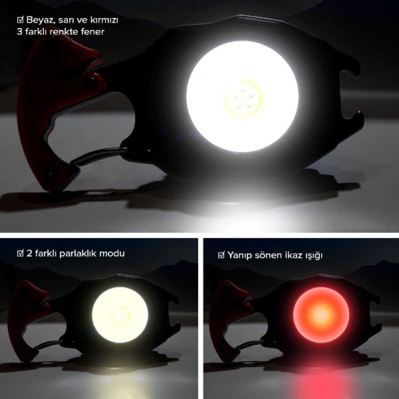 1 adet çok fonksiyonlu anahtarlık kamp lambası