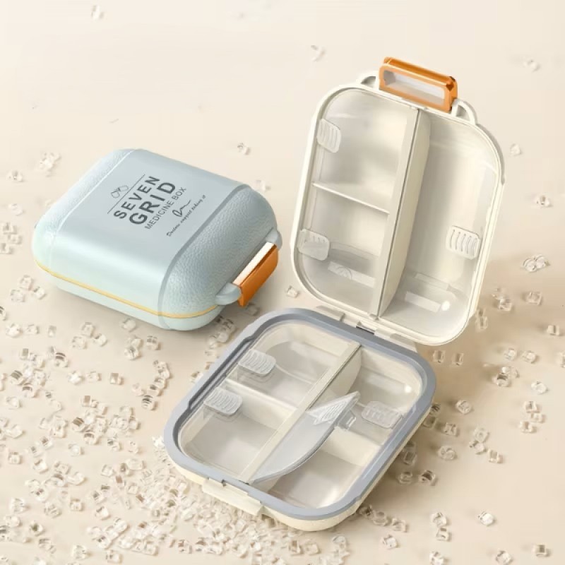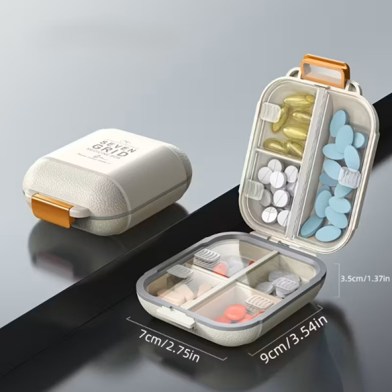 Çok ızgaralı ilaç kutusu, kompakt ve hafif tasarımı sayesinde günlük ilaç, vitamin ve takviyelerinizi düzenli biçimde saklamanız için ideal bir çözümdür.