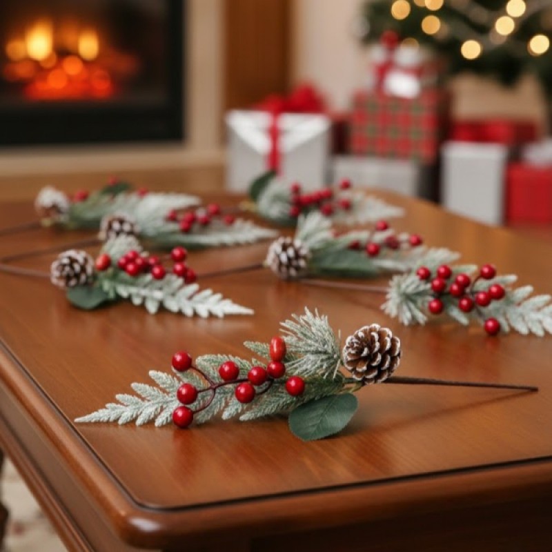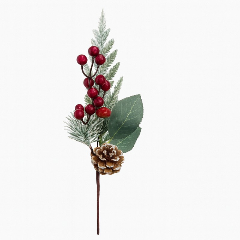 35 cm boyundaki yapısı sayesinde kapı süslerinde, çam ağacı dekorlarında, masa düzenlemelerinde, hediye paketlemelerinde ve çeşitli craft çalışmalarında rahatlıkla kullanılabilir. Gerçek dokulu yaprakları, kırmızı meyve detayları ve kozalak süslemesi sayesinde oldukça estetik bir görünüm sunar. Dayanıklı yapay malzemeden üretilmiş olması sayesinde uzun süre formunu korur ve tekrar tekrar kullanılabilir.