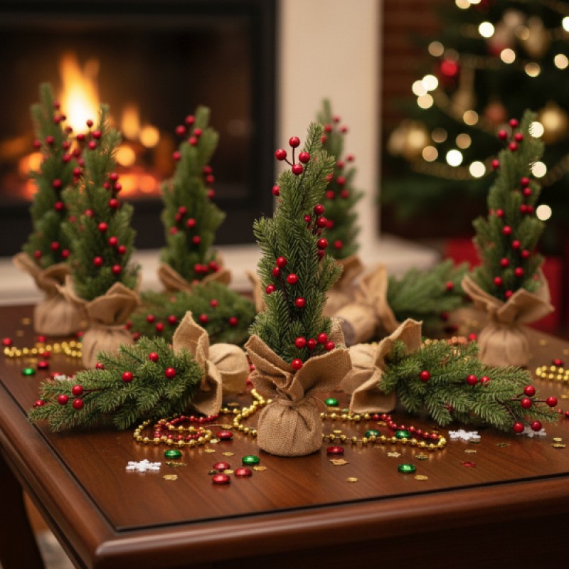 Dekoratif mini yapay kokina, 45 cm boyutuyla masa üstü dekorasyonlarda ve küçük alanlarda şık bir yeni yıl atmosferi oluşturmak için ideal bir üründür.