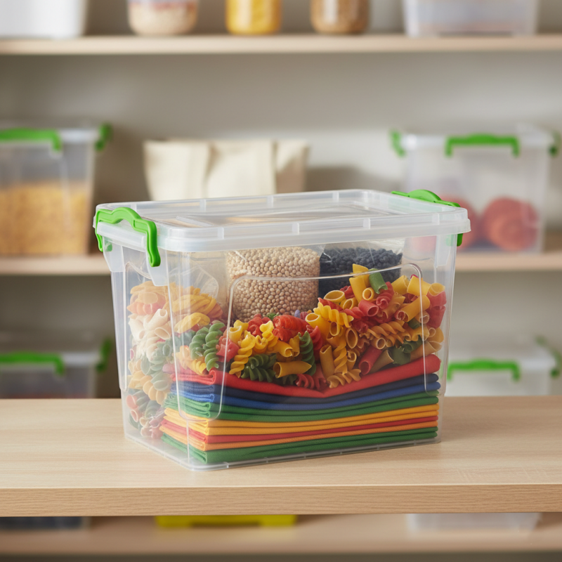 Derin Saklama Kutusu 4.5 Litre, mutfaktan banyoya kadar tüm yaşam alanlarınızda düzeni sağlayan, ekstra geniş hacimli bir depolama çözümüdür. 25,5 cm'lik derinliği sayesinde uzun boylu paketleri, büyük porsiyon gıdaları veya hacimli ev eşyalarını kolayca muhafaza etmenizi sağlar. Şeffaf tasarımıyla aradığınız her şeyi saniyeler içinde bulmanıza yardımcı olurken, güvenli kilit mekanizmasıyla tam koruma sunar.