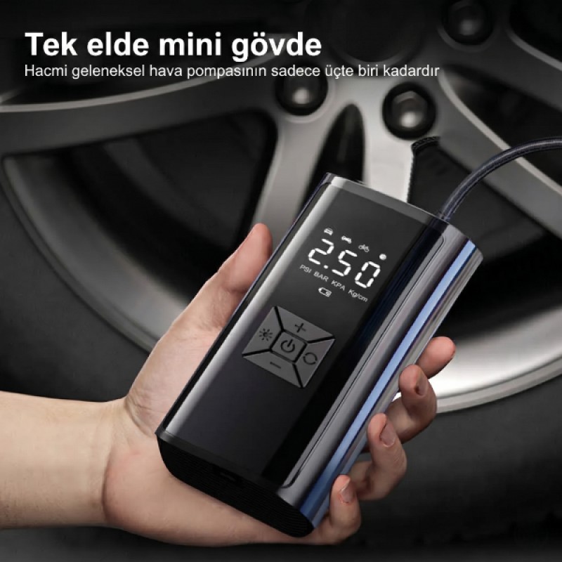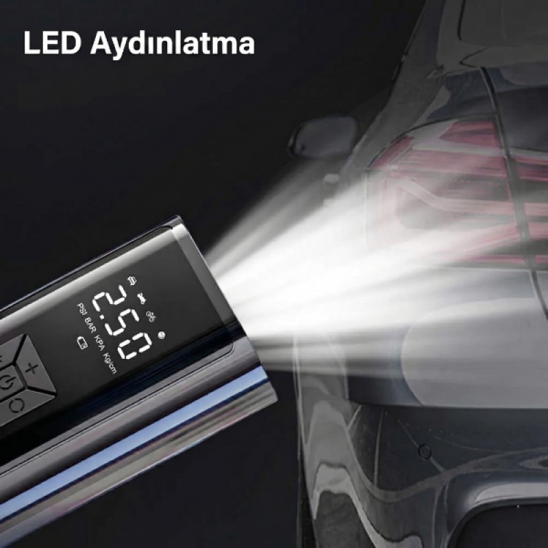 Yolculuklarınızda tam kontrol ve güvenlik elinizin altında! Dijital Ekranlı Şarjlı Taşınabilir Hava Kompresörü, Dual Güç Modu sayesinde hem dahili bataryasıyla kablosuz özgürlük sunar hem de araç çakmaklık adaptörüyle kesintisiz çalışır; yani bataryanız bitse bile yolda kalmazsınız. 120W motor gücü ve 30L/dak hava akışıyla sadece 60 saniyede hızlı takviye sağlayan bu cihaz, Akıllı Durma Sistemi ile donatılmıştır. Hedef basıncı ayarlayın, cihaz o değere ulaştığında otomatik olarak dursun. Kompakt yapısı ve 455 gramlık hafifliğiyle torpido gözünde veya sırt çantasında kolayca taşınabilir. Ayrıca karanlıkta güvenliğiniz için entegre LED aydınlatma (SOS modlu) ve acil durumlarda telefonunuzu şarj edebileceğiniz Powerbank (USB çıkışı) fonksiyonuna sahiptir.