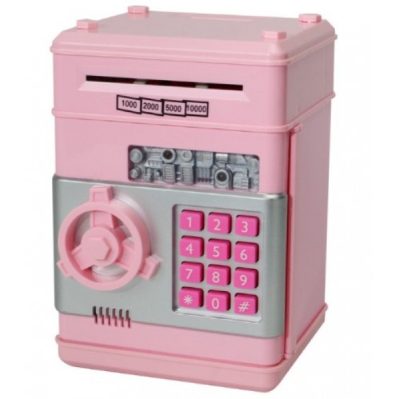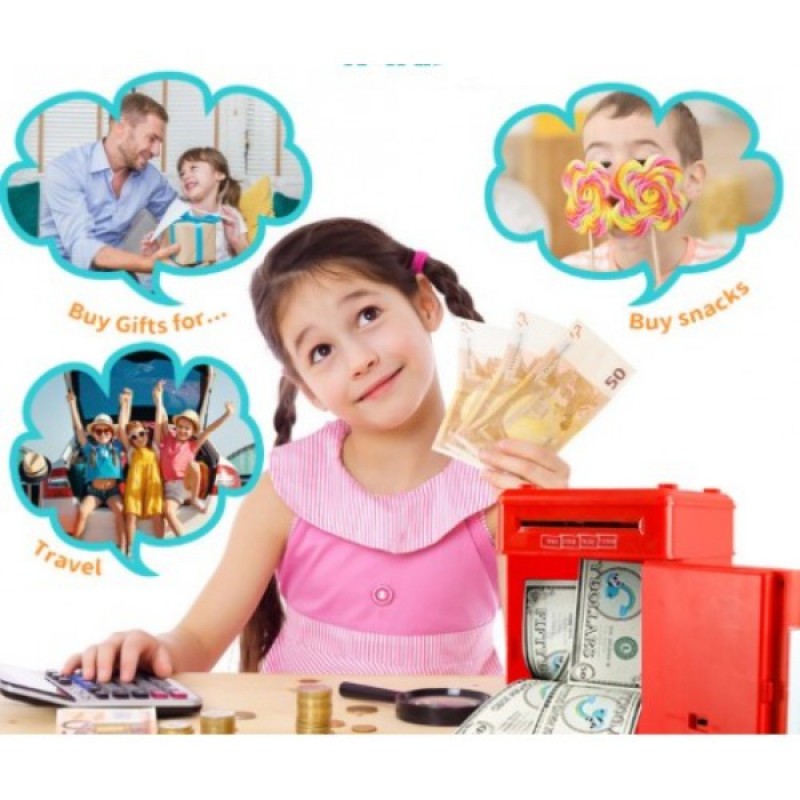 Elektronik şifreli kasa otomatik ATM kumbara, çocukların tasarruf bilincini eğlenceli bir şekilde kazanmalarına yardımcı olur. Bankamatik tarzı tasarımıyla kağıt paraları otomatik olarak içine çeker, madeni paralar için özel bir yuvası bulunur.