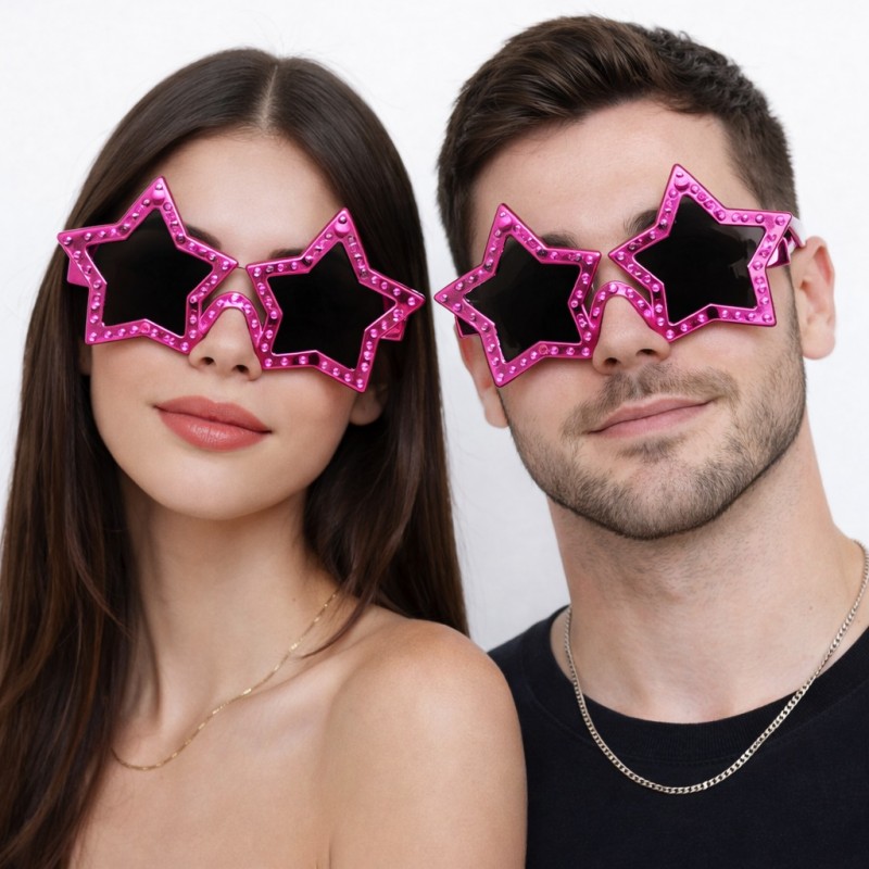 Yıldız Şekilli Parlak Metalize Parti Gözlüğü Gözlük Boyutu : 16 x 7 cm Yetişkin ve Çocukların kullanımına uygundur Kaliteli Plastik Malzemeden üretilmiştir Numarasız cam yapısı sayesinde göze zararı yoktur Koyu renk cam yapısına sahiptir