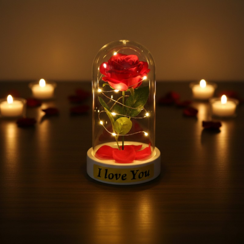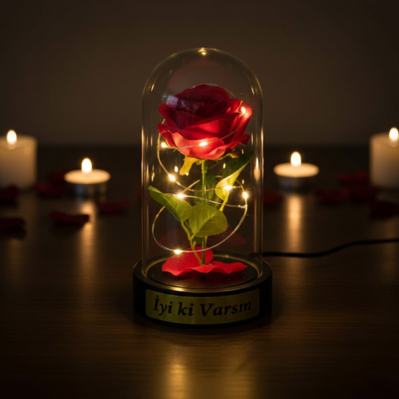 - 1 adet Gül Yapraklı Ledli Gül Fanus