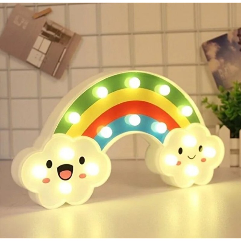Gülen Bulutlu Gökkuşağı LED Gece Lambası, çocuk odalarına neşe ve huzur katmak için tasarlanmış dekoratif ve işlevsel bir aydınlatmadır. 30x16 cm boyutundaki bu şirin gece lambası, gökkuşağı formu ve gülen bulut figürleriyle hem sevimli bir aksesuar hem de yumuşak ışığıyla rahatlatıcı bir gece arkadaşıdır.
