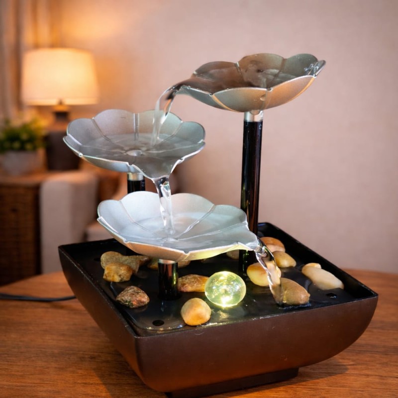 GÜMÜŞ ÇİÇEK TASARIMLI LED IŞIKLI SU ŞELALESİ