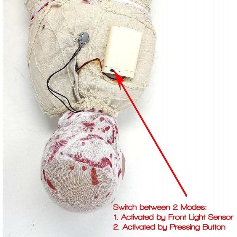 Halloween Dekorasyon Mumya Ürünler dilerseniz sensörlü dilerseniz düğmeli çalışmaktadır Hareketli ve Seslidir Ürün Ölçüsü : 75 cm