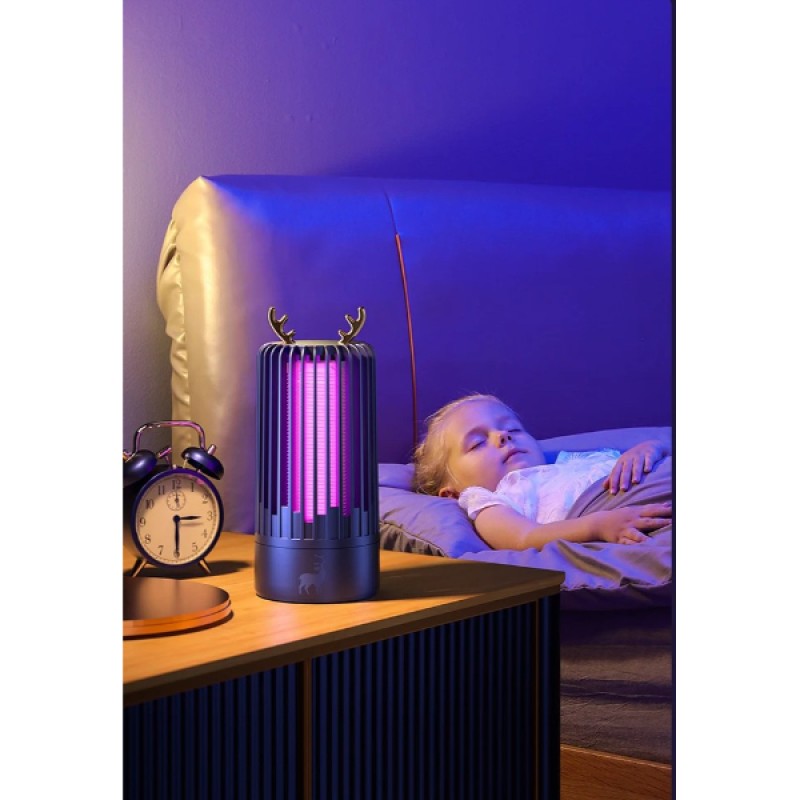 İç mekan UV sivrisinek lambası, karanlık ortamlarda etkili performans sunan USB şarjlı bir sivrisinek öldürücüdür. UV ışık teknolojisi ve özel biyonik koku sayesinde sinekleri kendine çekerek elektrikli ızgarayla etkisiz hale getirir. 1001 mAh ile 1600 mAh arasında değişen batarya kapasitesi sayesinde 0-4 saat arası kullanım sunar. Şarj süresi 5-8 saat aralığındadır. En verimli sonuç için cihaz yatmadan 2-3 saat önce karanlık ve hava geçirmez bir odaya yerleştirilmelidir. 20-50 metrekarelik alanlarda etkilidir. Işık kaynaklarının kapalı olduğu ortamlarda daha başarılı sonuç verir. Çocuklar ve aile bireyleri için güvenli kullanım sunar.