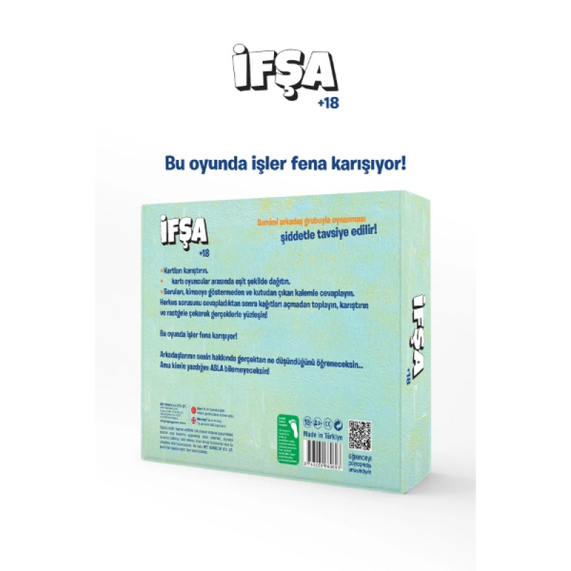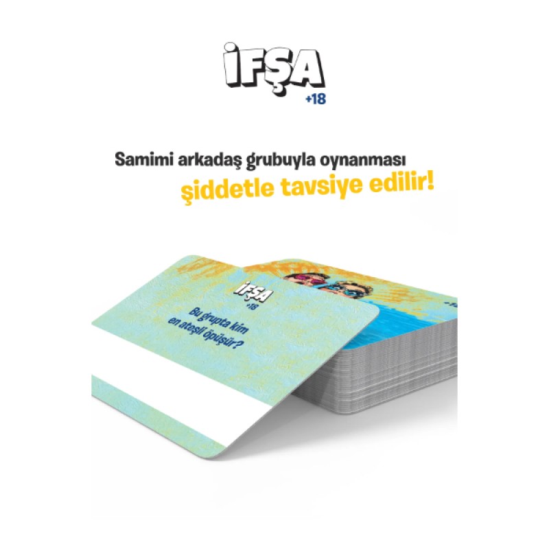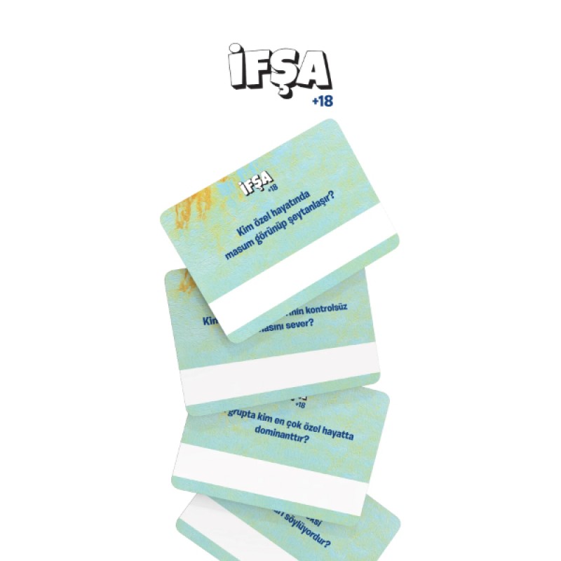 İfşa +18, samimi arkadaş grupları arasında dürüstlüğün, gizemlerin ve bolca kahkahanın ön planda olduğu heyecan verici bir sosyal kart oyunudur. "Bu oyunda işler fena karışıyor!" mottosuyla hazırlanan bu oyun, arkadaşlarınızın sizin hakkınızda gerçekten ne düşündüğünü öğrenmenizi sağlarken, cevapların kimden geldiğini bir sır olarak saklayarak gizemli bir atmosfer yaratır. +18 yetişkin içeriği ve provokatif sorularıyla atmosferi anında ısıtan bu party game, anonim cevaplama sistemi sayesinde herkesin en dürüst ve cesur cevaplarını vermesine olanak tanır. Pop-art tarzı canlı tasarımı ve kaliteli kart yapısıyla görsel olarak da dikkat çeken İfşa, pijama partilerinden hafta sonu buluşmalarına kadar her türlü sosyal etkinlikte unutulmaz ve eğlenceli anlar biriktirmeniz için tasarlanmıştır. Gerçeklerle yüzleşmeye ve arkadaşlarınızın gizli düşüncelerini keşfetmeye hazır mısınız?