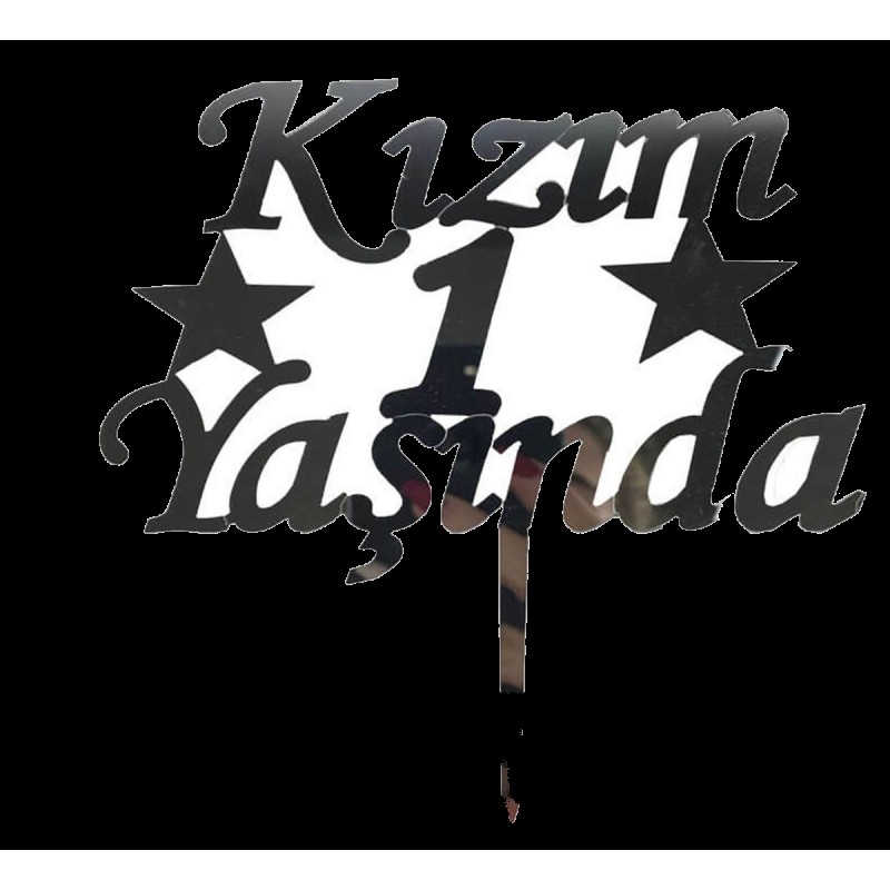 Kızım 1 Yaşında Yazılı Pasta Süsü Gümüş Renk