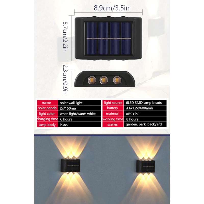 Modern 6ledli Solar Duvar Lamba Dekorasyon Aydınlatma Aplik Güneş Enerji Gün Işığı Güneş Enerjisi ile çalışmaktadır.