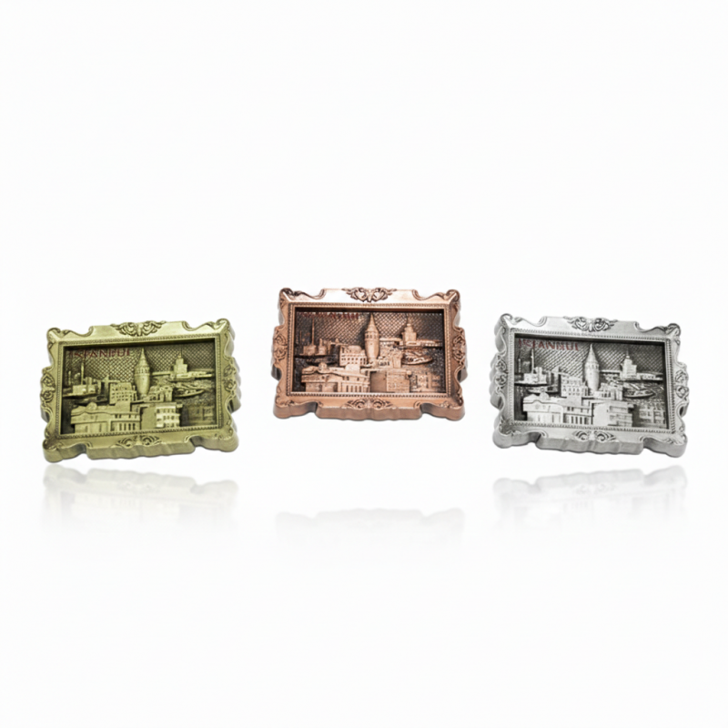 İstanbul Yöresel Magnet Model 14, şehrin binlerce yıllık tarihini ve kültürel dokusunu evlerinize taşıyan zarif bir hatıra objesidir. İstanbul’un karakteristik figürleriyle zenginleştirilen bu özel tasarım, metalin asaletini geleneksel motiflerle buluşturur. Hem günlük kullanımda buzdolaplarınızı süsleyecek şık bir aksesuar hem de şehre dair anılarınızı taze tutacak anlamlı bir koleksiyon parçasıdır.