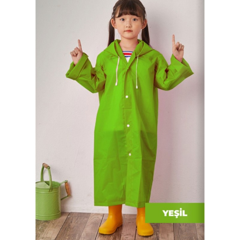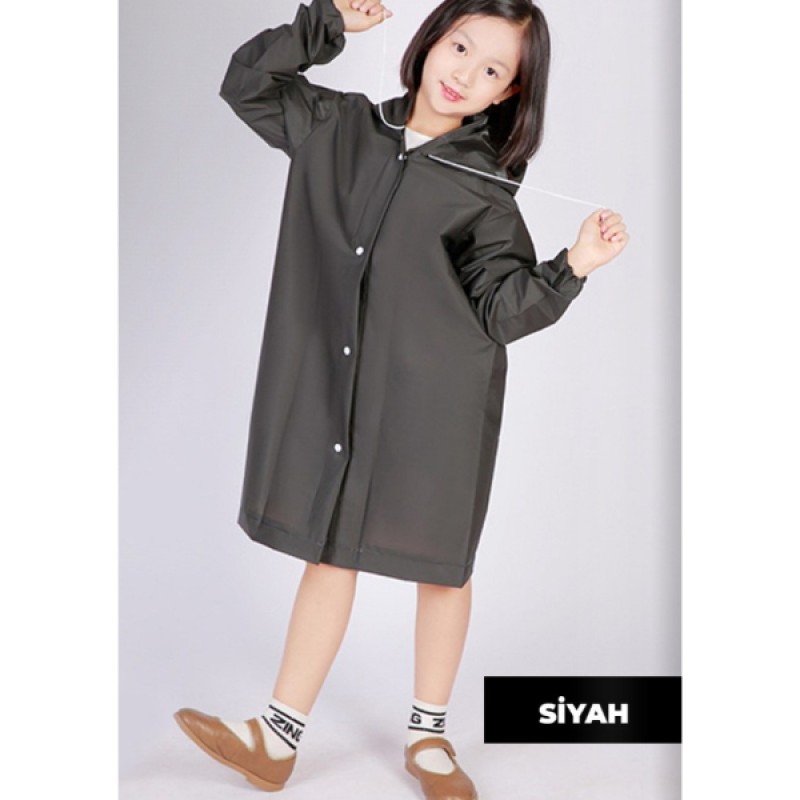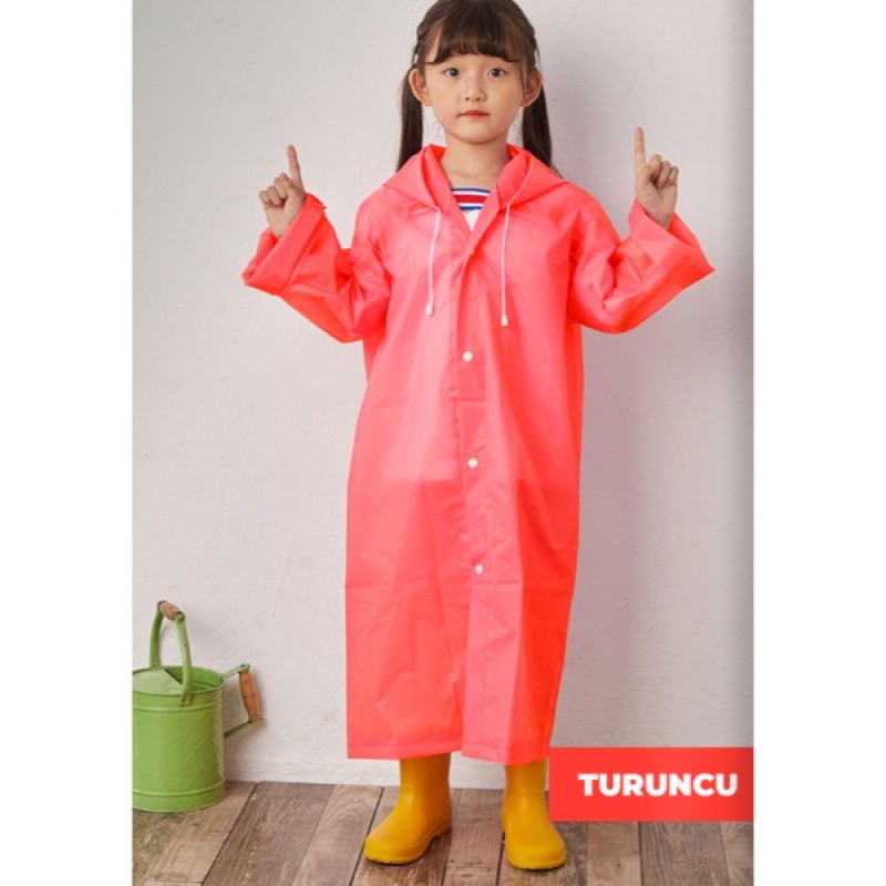 Kapüşonlu çocuk yağmurluk, yağmurlu ve rüzgârlı havalarda çocukların konforunu ve korunmasını ön planda tutacak şekilde tasarlanmıştır.