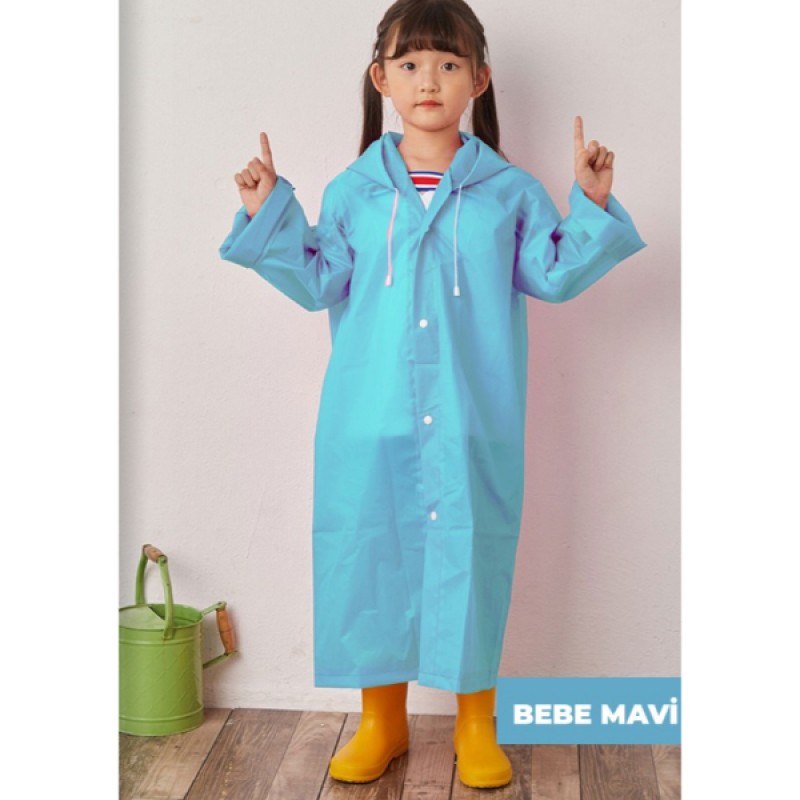 Su geçirmez EVA kumaştan üretilen yapısı sayesinde yağmur suyunu içeri almaz ve çocukların kuru kalmasına yardımcı olur. Hafif ve esnek dokusu, çocukların hareketlerini kısıtlamadan rahat bir kullanım sunar.