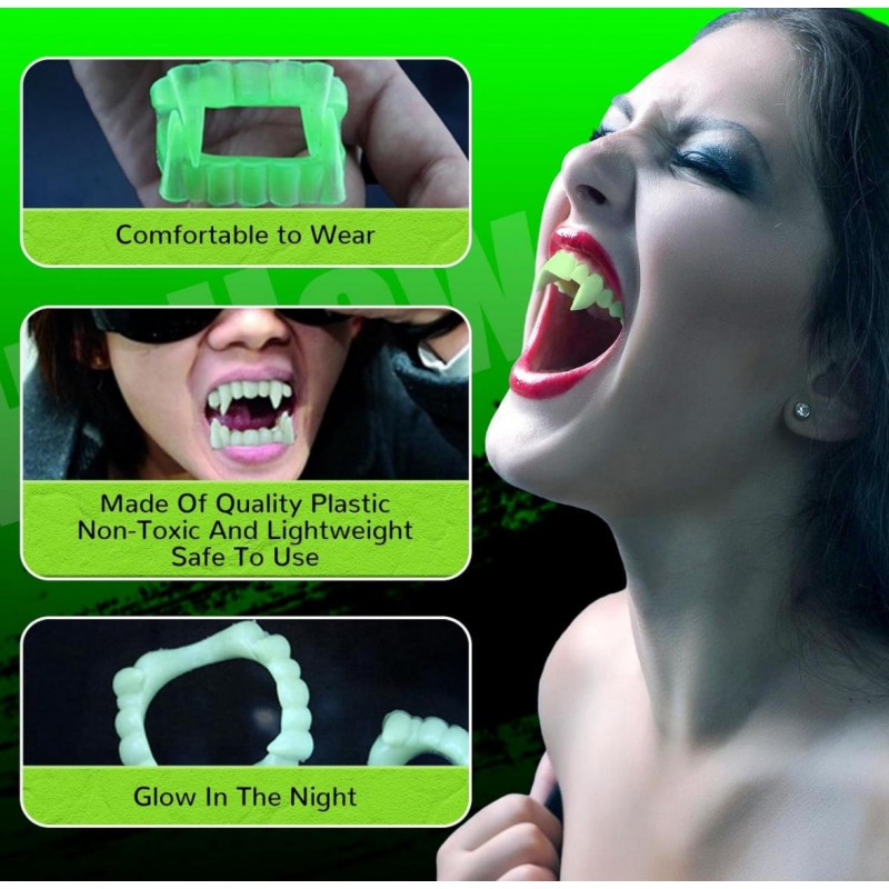 ÜRÜN ÖZELLİKLERİ Çift Damak Takma Vampir Dişi Ürün Karanlıkta Parlamaktadır - Fosforludur Ürün Malzemesi : Plastik Ürün tamamen zararsızdır Ürün Rengi gündüz şeffaftır karanlıkta yeşil yanmaktadır Esnek Yapı Sayesinde Kolay Bir Şekilde Ürünü Takabilirsiniz Kostümlerinizi tamamlayıcı harika bir ürün Ürün Ölçüsü : 4 cm x 5 cm