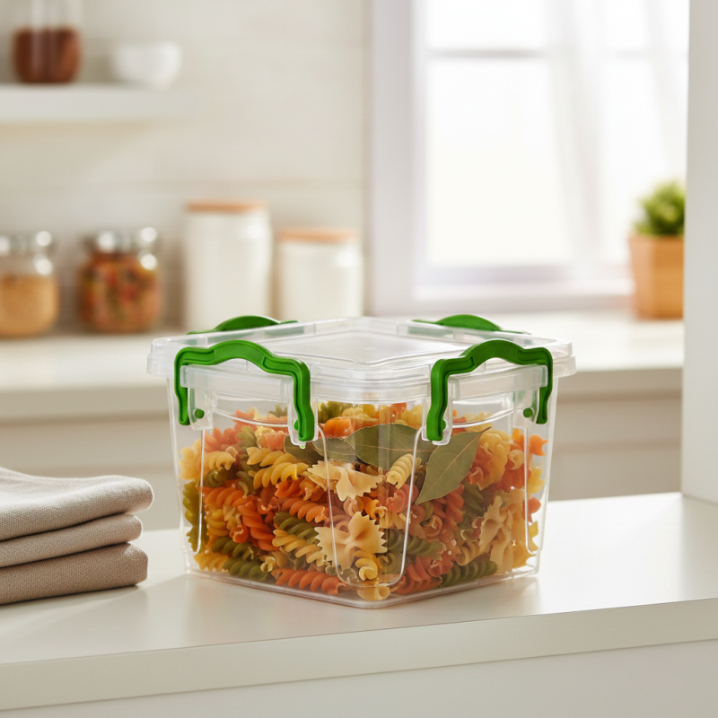1 Adet 1.8 Litrelik Kare Saklama Kutusu (Yeşil Klipsli Kapaklı)