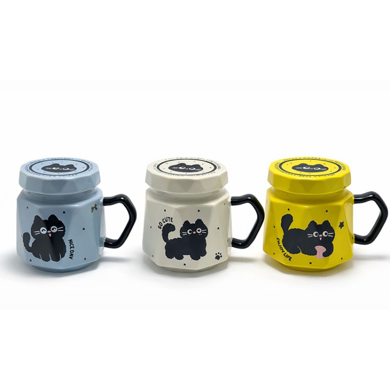 KEDİ DESENLİ KAPAKLI SERAMİK KUPA BARDAK