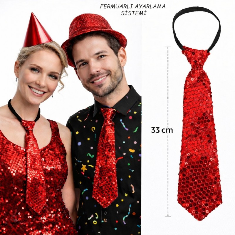 Parlak kırmızı rengi ve göz alıcı pul payet kaplaması ile bu parti kravatı, bulunduğunuz ortamda tüm dikkatleri üzerinize çeker. Işığı yansıtan yüzeyi sayesinde sahne, doğum günü, yılbaşı, konsept parti ve özel organizasyonlarda enerjik bir görünüm sunar. 33 cm ideal uzunluğa sahiptir ve hem kadın hem erkek kullanımına uygundur. Hafif yapısı sayesinde rahatsızlık vermez, gün boyu konforlu kullanım sağlar. Kravatın boyun kısmında bulunan fermuarlı ayarlama sistemi, pratik şekilde takıp çıkarmanıza olanak tanır. Kolay ayarlanır ve sabit durur, kayma yapmaz. Ürün Özellikleri: Renk: Parlak Kırmızı Uzunluk: 33 cm Kaplama: Pul Payet Ayarlama: Fermuarlı Sistem Unisex Kullanım Parti & Organizasyon Aksesuarı
