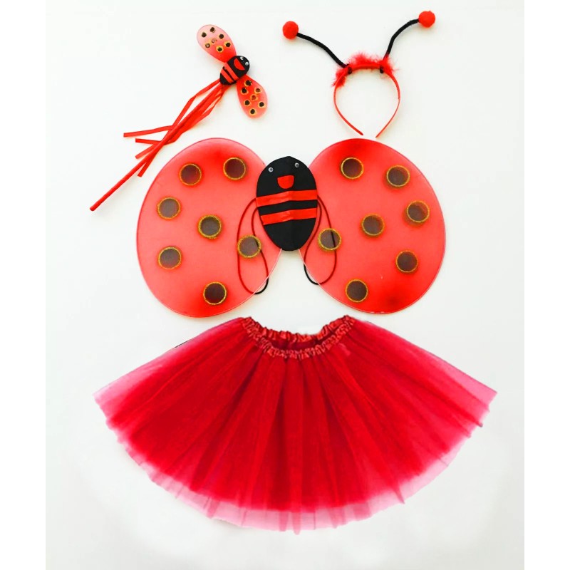 KIRMIZI UĞUR BÖCEĞİ KOSTÜM SETİ - TÜTÜ, KANAT, TAÇ, ASA