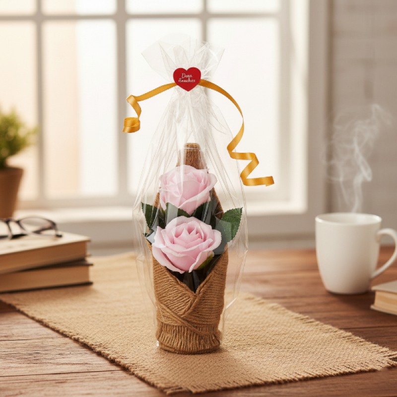 Ürün; kırmızı, pembe, beyaz ve mavi renk seçeneklerinden oluşan kraponlu çiçeklerle hazırlanmıştır. Renk seçeneği yapılamaz, karışık olarak gönderilmektedir. Her biri özenle ambalajlanmış olan çiçekler, rustik kraft kağıdı sargısı ve kalp detaylı üst süsleme ile zarif bir bütünlük sunar.