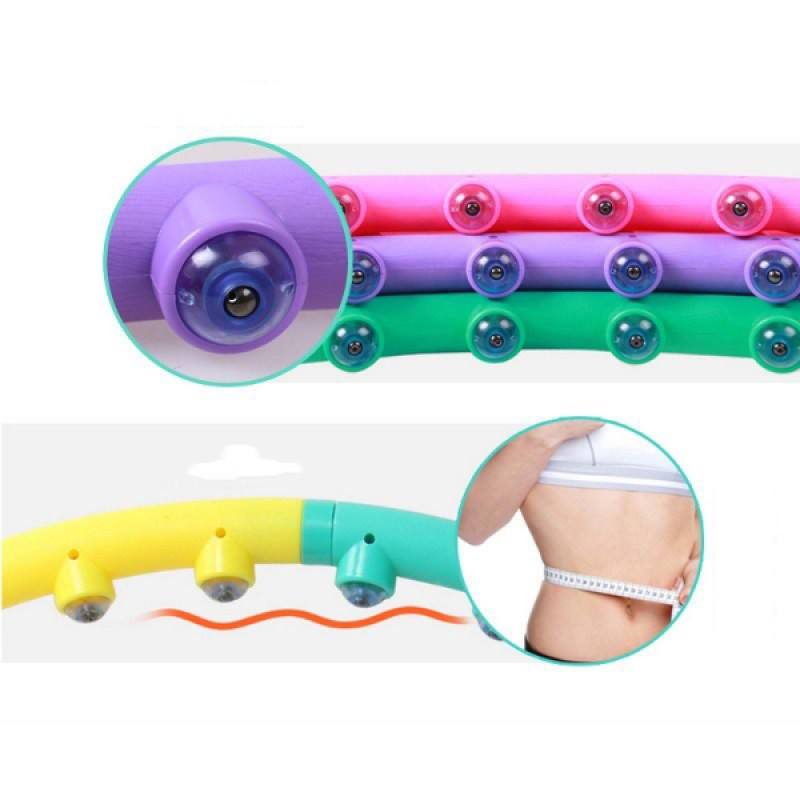 Masaj bilyeli hulahop, formda kalmak ve vücut şekillendirmek isteyenler için mükemmel bir egzersiz aracıdır. Düzenli kullanımda bel ve karın bölgesindeki yağların yakılmasına yardımcı olur, kasları sıkılaştırarak fit bir görünüm kazandırır. İç kısmında yer alan masaj bilyeleri, egzersiz sırasında kan dolaşımını hızlandırır ve vücuda masaj etkisi yaparak rahatlama sağlar. Renkli ve modüler tasarımı sayesinde kolayca takılıp sökülebilir, taşıması ve saklaması pratiktir.