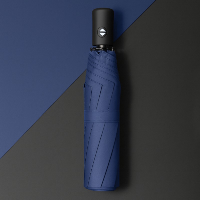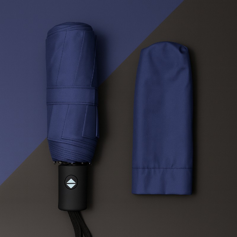 Mavi kılıflı otomatik kompakt şemsiye, şık ve zarif tasarımıyla hem iş hem günlük kullanım için ideal bir seçenektir.